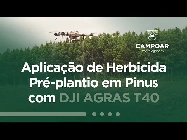 Demonstração do uso do DJI AGRAS T40 na aplicação de herbicida pré-plantio em pinus, com mais precisão, eficiência e sustentabilidade no manejo florestal.
