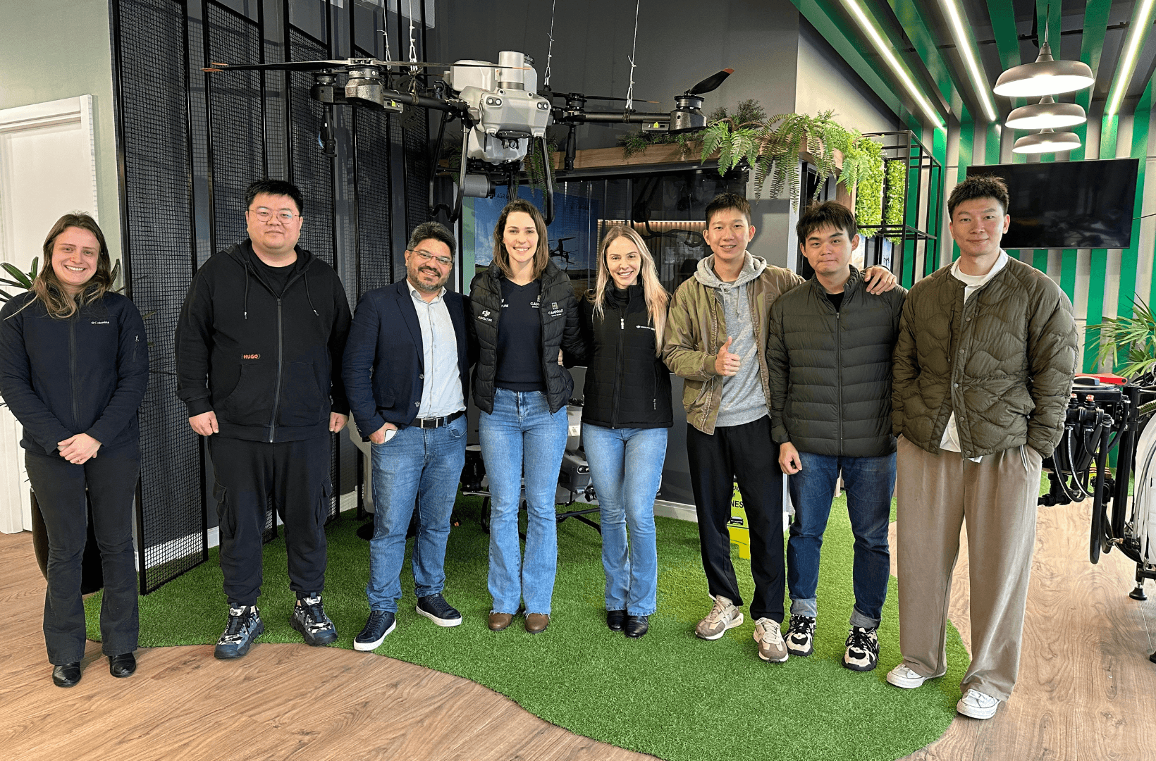 Francielle Kowalski, criada no interior do Paraná, cresceu no meio rural e construiu sua carreira na indústria têxtil em Jaraguá do Sul/SC. Já Fernando Hardt, natural de Jaraguá, atuou por mais de 10 anos com consultoria agrícola, onde teve seu primeiro contato com drones de pulverização em 2018.